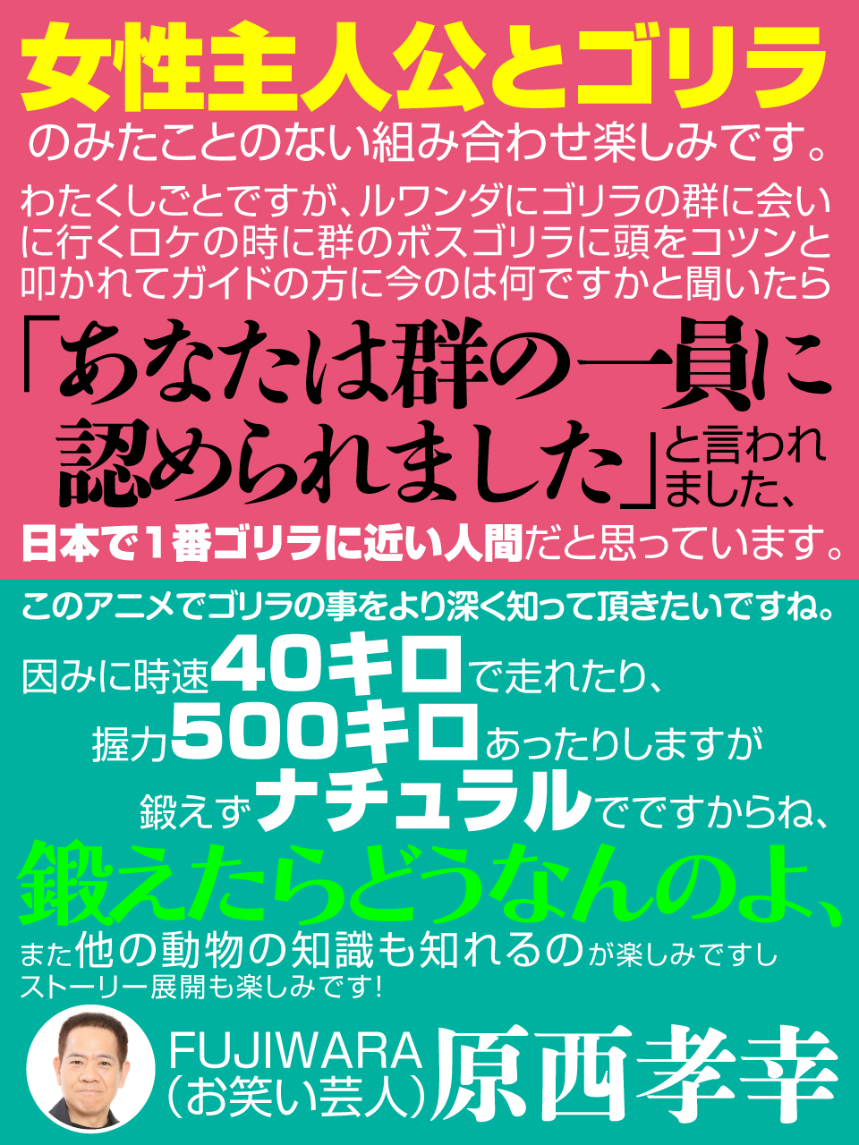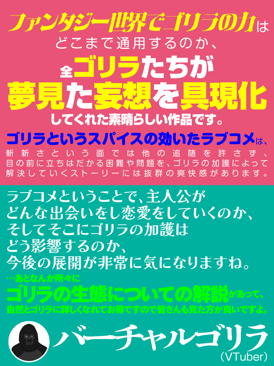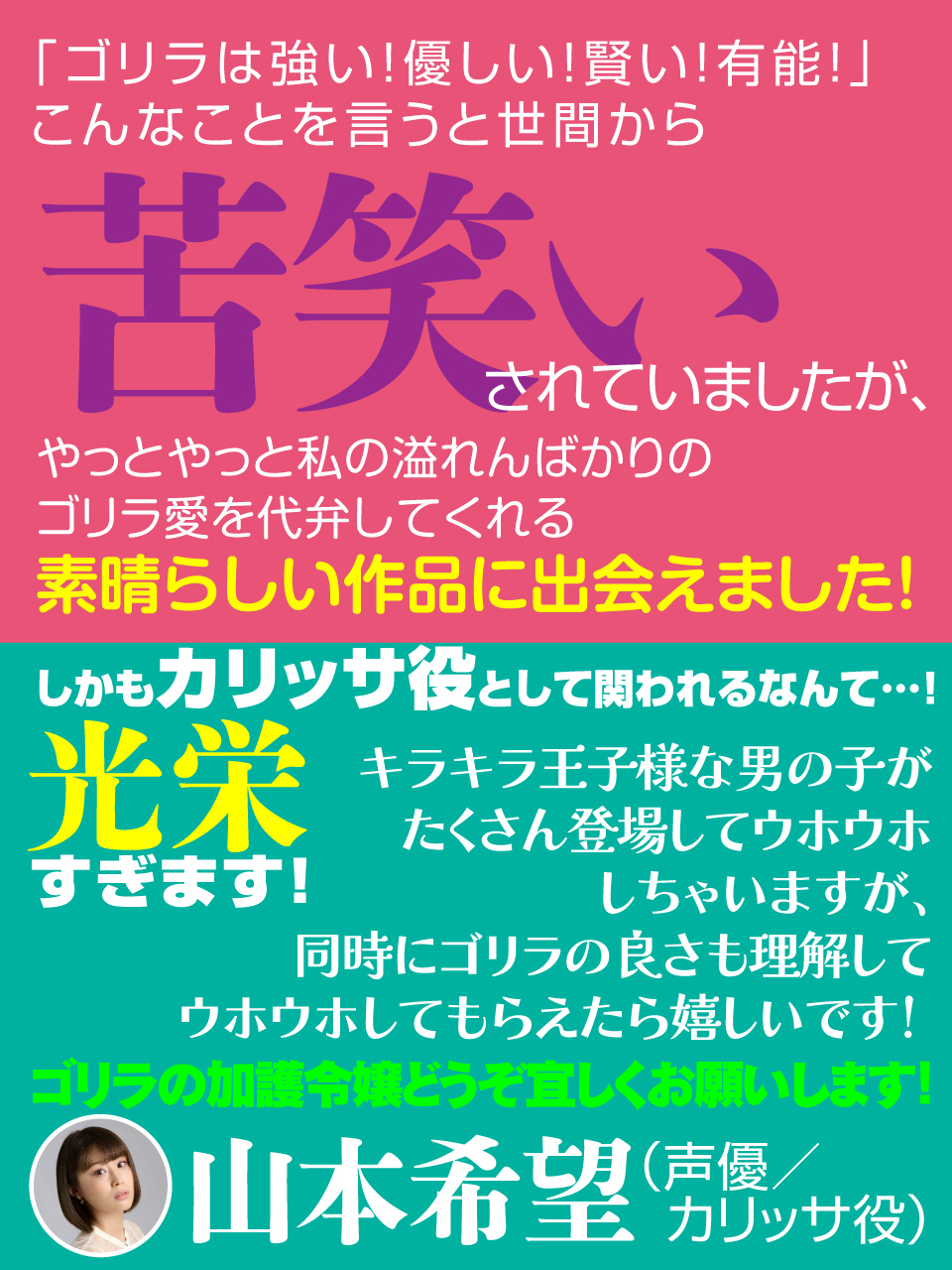 🦍️ TVアニメ『ゴリラの神から加護された令嬢は王立騎士団で可愛がられる』に山本希望らゴリラ関係著名人の応援コメントが到着