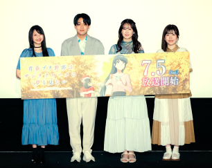 2025年7月5日(土)よりTOKYO MXほかにて放送開始となるTVアニメ『青春ブタ野郎はサンタクロースの夢を見ない』。本作の先行上映会が2025年6月21日(土)にユナイテッド・シネマ アクアシティお台場で開催され、石川界人さん(梓川咲太役)・瀬戸麻沙美さん(桜島麻衣役)・雨宮天さん(広川卯月役)・石見舞菜香さん(美東美織役)が登壇した。