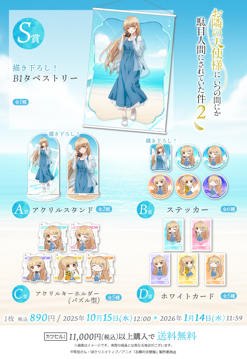 🎯️ 夏の思い出がテーマのTVアニメ『お隣の天使様にいつの間にか駄目人間にされていた件2』オンラインくじが発売