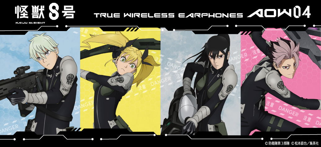 🎧️ TVアニメ『怪獣8号』モデルのワイヤレスイヤホン第2弾が登場。市川レノ・四ノ宮キコル・亜白ミナ・鳴海弦の4モデル
