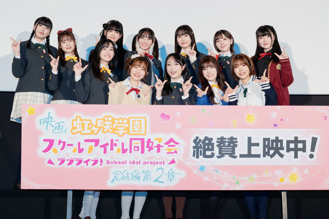 2025年11月7日(金)にロードショーを迎えた映画『ラブライブ!虹ヶ咲学園スクールアイドル同好会 完結編 第2章』。本作の公開記念舞台挨拶が本日2025年11月9日(日)に丸の内ピカデリー1で開催され、矢野妃菜喜さん(高咲侑役)、大西亜玖璃さん(上原歩夢役)、相良茉優さん(中須かすみ役)、前田佳織里さん(桜坂しずく役)、久保田未夢さん(朝香果林役)、村上奈津実さん(宮下愛役)、鬼頭明里さん(近江彼方役)、指出毬亜さん(エマ・ヴェルデ役)、田中ちえ美さん(天王寺璃奈役)、小泉萌香さん(三船栞子役)、内田秀さん(ミア・テイラー役)、法元明菜さん(鐘嵐珠役)が登壇した。