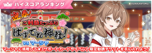 巫女姿の「☆3【照れ隠しの夢見巫女】アリサ・ミハイロヴナ・九条」「☆3【良縁の導き手?】マリヤ・ミハイロヴナ・九条」「☆3【信じる者は救われる?】周防有希」「☆3【祈りは一途】君嶋綾乃」「☆3【大凶だったらウケる】宮前乃々亜」がラインナップされた特効勧誘も実施。このキャラクターには同時開催中のイベントを有利に進めることができるボーナス効果が付与されている。